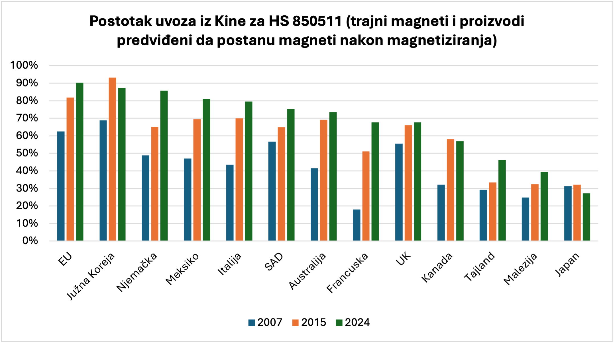 Slika 11 Ovisnost o uvozu trajnih magneta baziranih na rijetkim zemnim metalima iz Kine