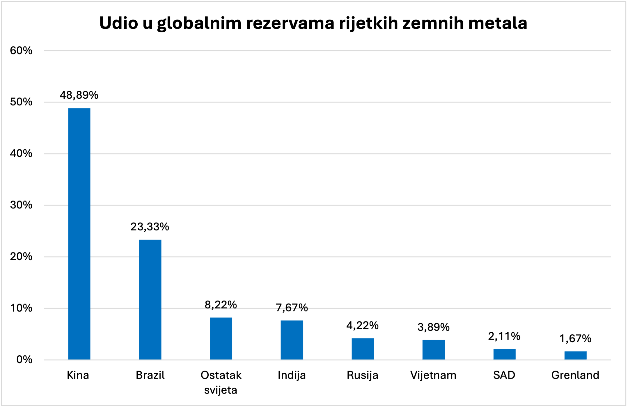 Slika 8 Globalne rezerve rijetkih zemnih metala (geografska distribucija nalazišta)