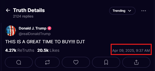 Slika 3. Trumpova objava na društvenim mrežama koja je označila kraj pada dionica