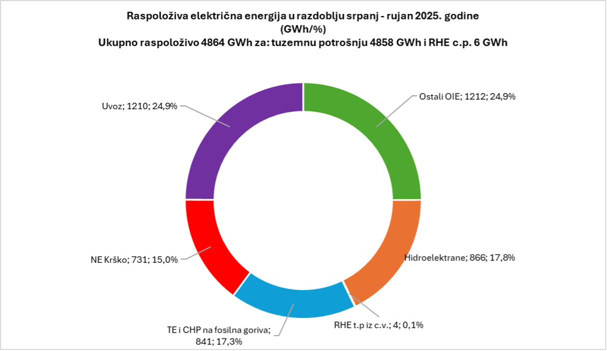 Grafikon 3 – Raspoloživa električna energija u RH u Q3 2025.