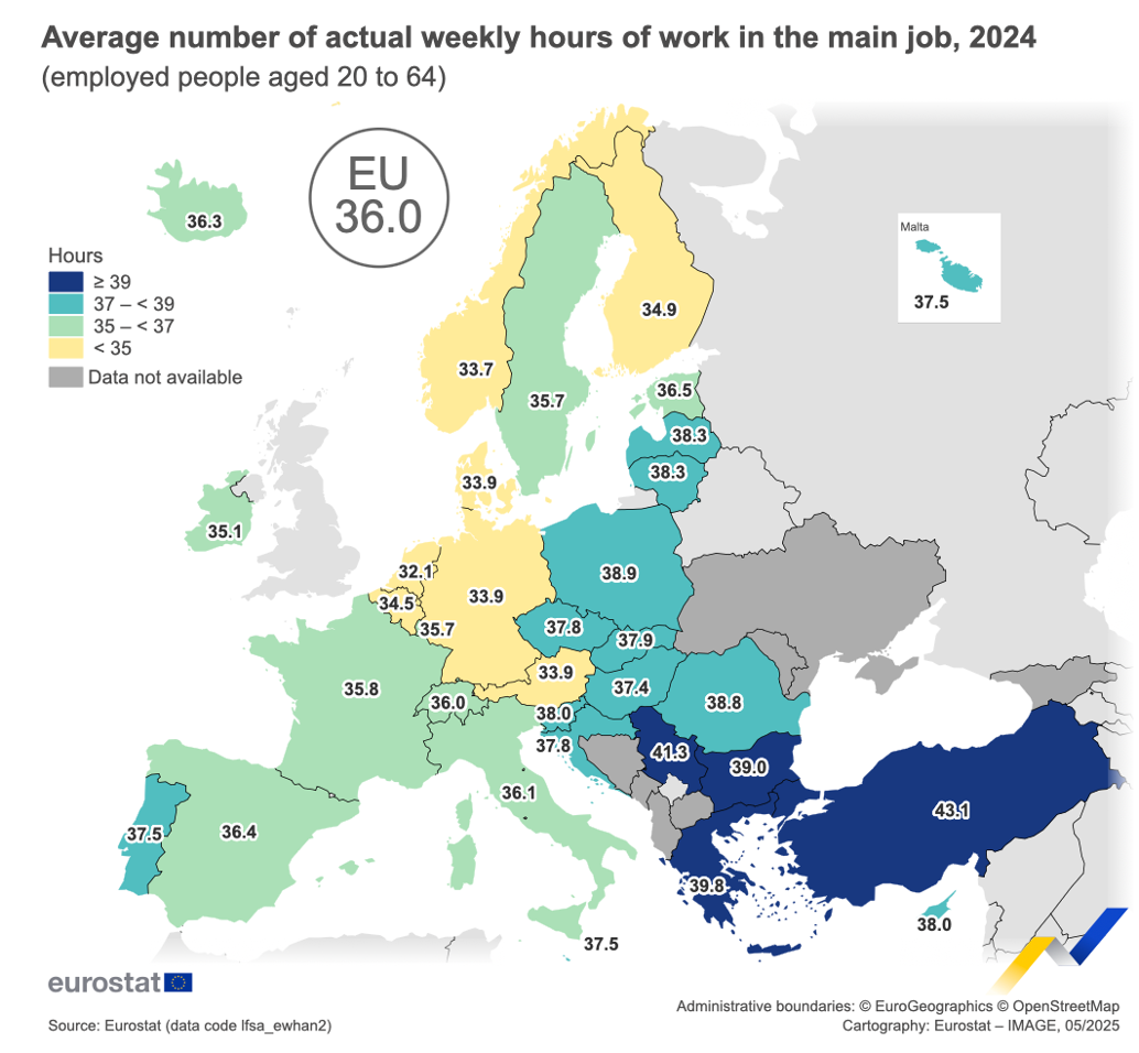 Do sada se pisalo da se u Hrvatskoj radi gotovo 40 sati na tjedan u prosjeku, u što se ubrajala i pauza, pa izgleda da su podaci za prošlu godinu bez pauze, kao i u drugim državama članicama.