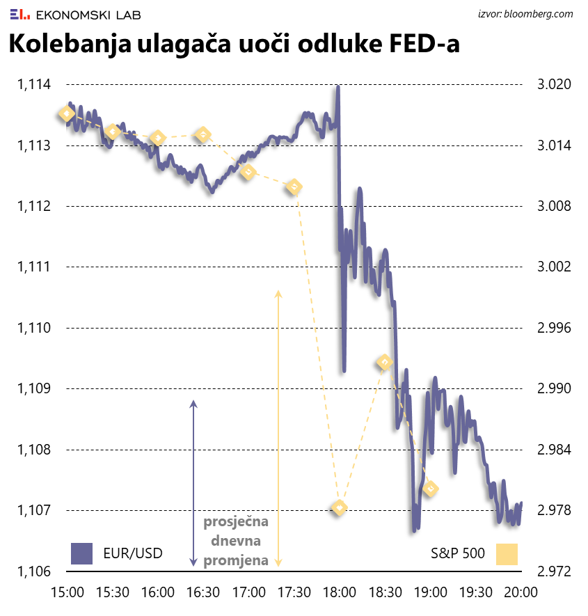 Kao u neka davna (predkrizna) vremena, ovotjedni sastanak američkih monetarnih vlasti imao je obilježja drame. Nedoumice i kolebanje ulagača najbolje oslikavaju zbivanja na deviznom tržištu, gdje se tečaj EUR/USD, nekoliko sati prije no što je odluka FED obznanjena oprezno kretao unutar prilično uskog raspona, da bi potom uslijedio vatromet.