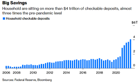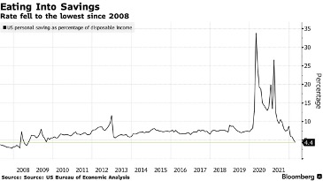 S druge strane, valja imati na umu da je, kao i više-manje svugdje u svijetu, većina ove štednje u rukama manjeg broja ljudi (nije ravnomjerno raspoređena). Dakle, iako prosječni Amerikanac ima određenu štednju za kojom može posegnuti kako bi premostio osjetni porast svakodnevnih životnih troškova, ona nije neograničena. A trenutna stopa štednje je takva da je ista najniža još od Velike financijske krize, što pokazuje koliko je ovaj porast opće razine cijena opterećujući za raspoložive dohotke građana.