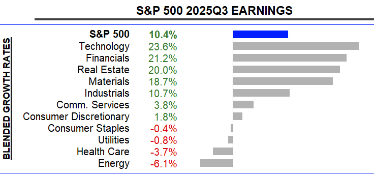 - Dosad objavljeni financijski izvještaji kompanija za treće tromjesečje mahom su bili bolji od očekivanja. Prema podacima Refinitiva, dionice iz sastava S&P 500 na dobrom su putu da u Q3 ostvare rast prihoda od 6,7 posto i rast dobiti od 10,4 posto Y/y. Očekivano, tehnološki sektor i dalje dominira s najvišim stopa rasta.