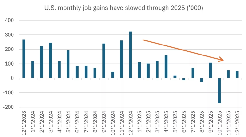 - Prosinački izvještaj o zaposlenosti (jobs report) pokazao je kako je u SAD-u u prosincu došlo do rasta broja zaposlenih za 50 tisuća, što je bilo manje od očekivanja analitičara koji su očekivali rast od 70 tisuća. Uz to je revizija za prethodna dva mjeseca pokazala niži rast broja zaposlenih za 76 tisuća od prvotno objavljenih, što znači da trenutačni tromjesečni prosjek iznosi -22,3 tisuće.