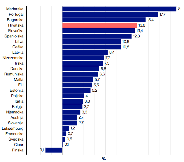 Slika 1. Rast cijena stambenih nekretnina u EU u trećem tromjesečju, Y/y