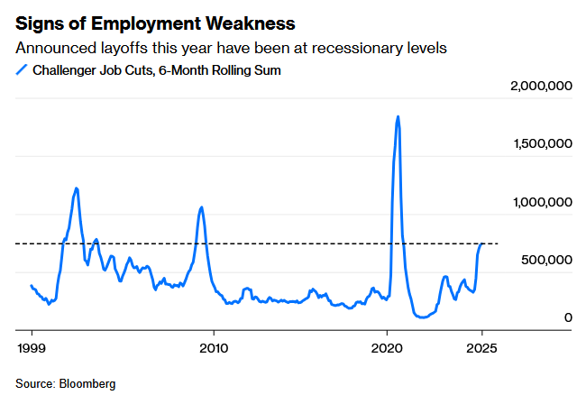 • Novi američki jobs report ponovno je pokazao podatke bolje od očekivanja: u lipnju je otvoreno 147 tisuća ovih radnih mjesta, dok je stopa nezaposlenosti pala s 4,2% na 4,1%. Rast plaća se pritom usporio na 3,7%. S druge strane, ADP report je pokazao prvi pad broja zaposlenih u privatnom sektoru još od 2021. Nadalje, najave o otpuštanjima, koje desetljećima već skuplja firma Challenger, Gray & Christmas, također pokazuje da je ovoliki broj najavljenih otkaza u zadnjih 6 mjeseci ranije bio samo u razdobljima recesije. Signali s američkog tržišta rada tako i dalje šalju mješovitu sliku.