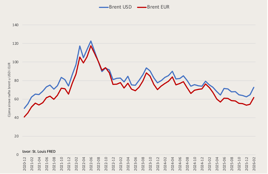 Međutim, ta varijacija nije bila toliko neobična. Ona jest najavljivala kraj energetsko-dezinflacijskih pritisaka koji su obilježili drugu polovinu 2025., no 73 dolara bila su još uvijek ispod razine svjetskih cijena u prva dva mjeseca 2025. kada se Brent kretao između 75 i 80 dolara za barel. I još važnije, podaci Međunarodne energetske agencije i izvještaji s tržišta ukazivali su na višak ponude i vjerojatno smirivanje cjenovnih pritisaka. Samo da nije rata.